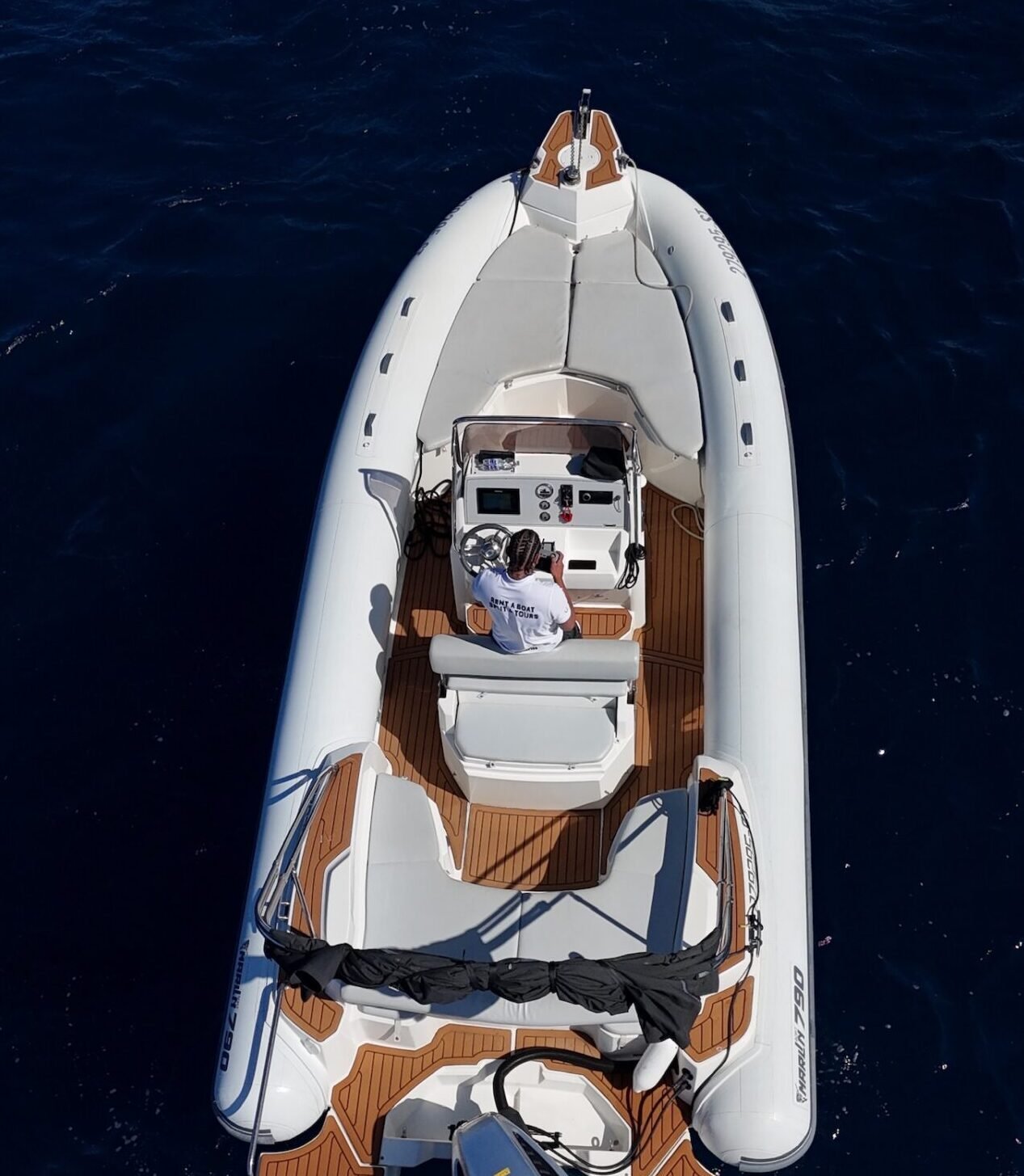 Modern 2023 speedboat with full teak deck, radar, GPS, WiFi, refrigerator, freezer and cockpit speakers. Valid sailing license required.